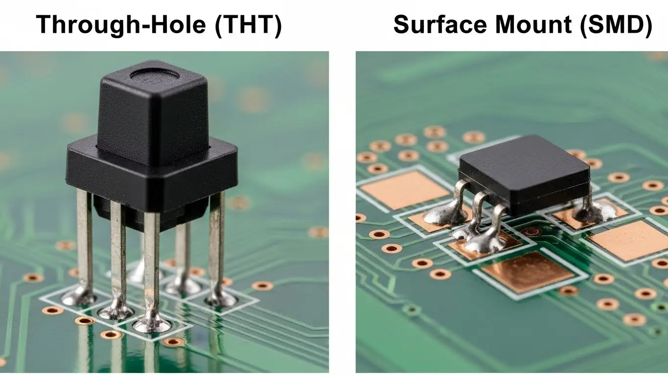 | Feature | Through-Hole (THT) | Surface Mount (SMD) |