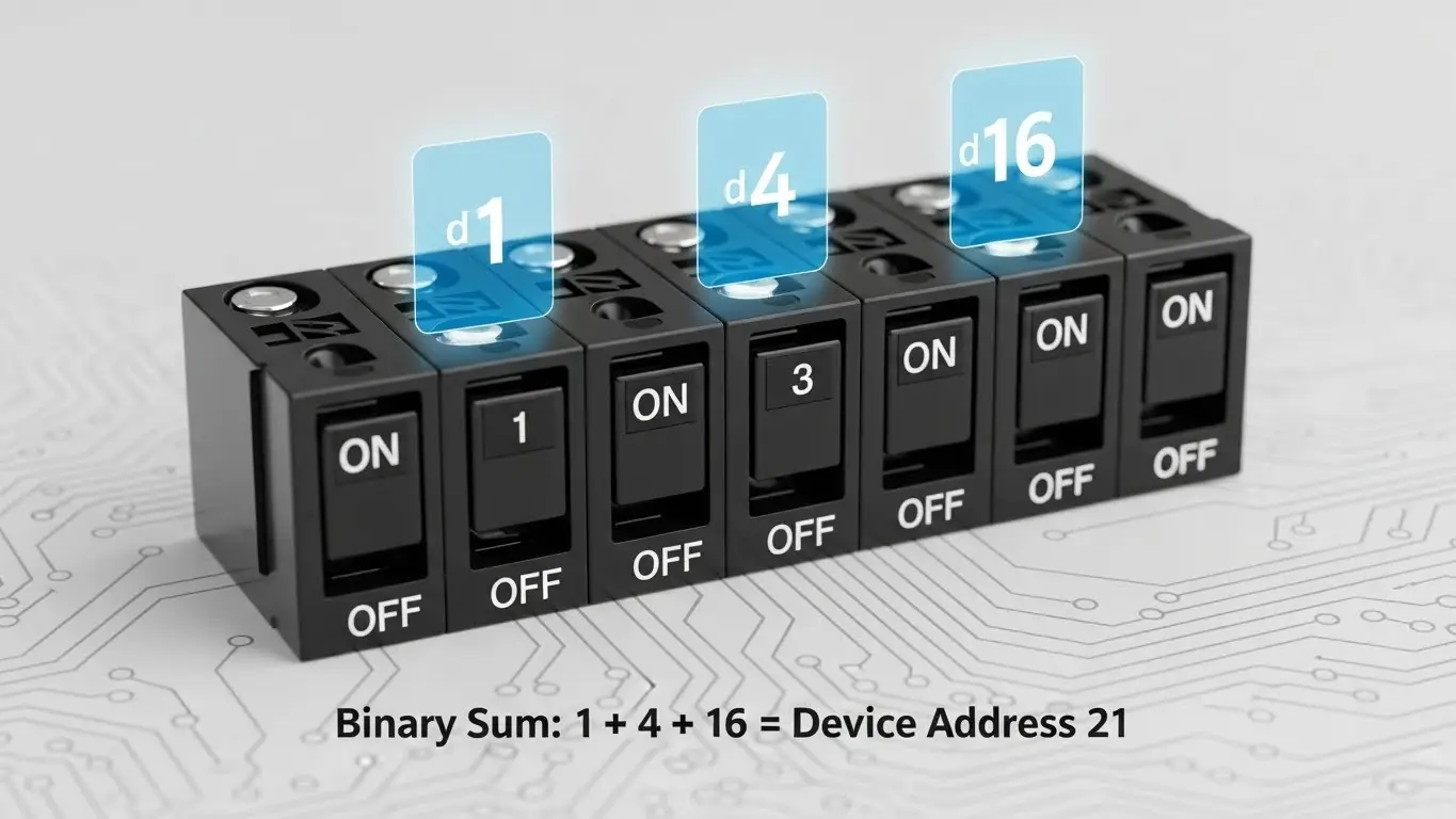 DIP switches function on simple binary logic: On (1) and Off (0). By combining these positions across multiple switches, you create a unique numerical code. This code tells the device its specific address or operating mode, allowing multiple devices to exist on one network.