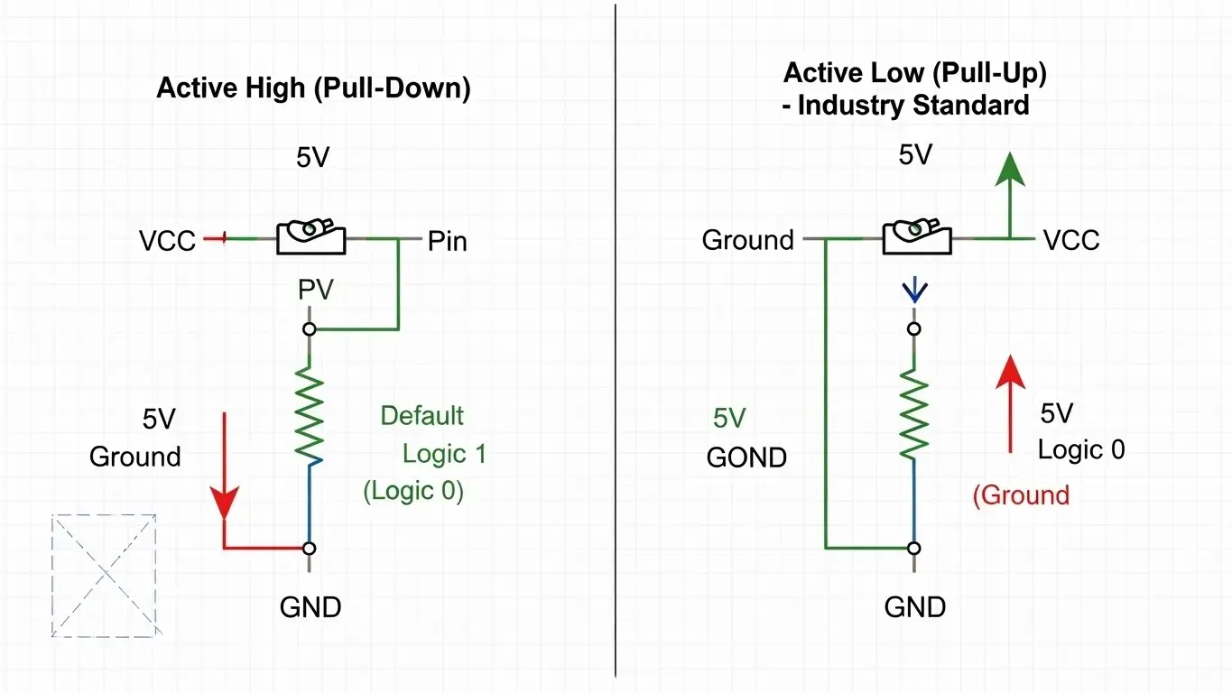 - Active Low is Standard: Connecting switches to Ground is safer and more common than connecting to Voltage.