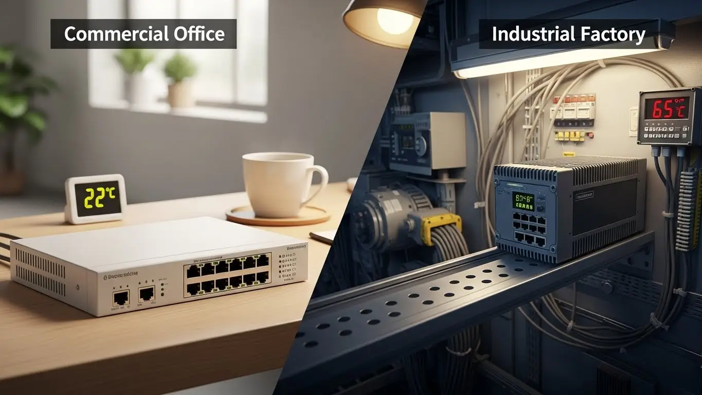 While a commercial switch is designed to sit in a climate-controlled server room (usually kept at a comfortable 20°C), industrial gear is built for the trenches.