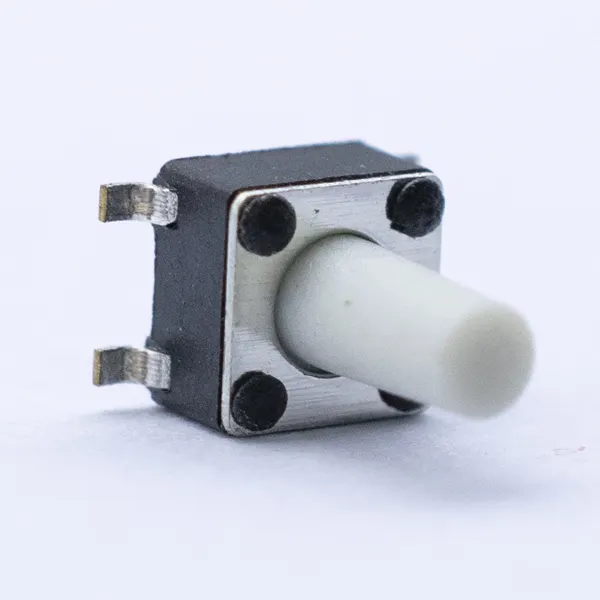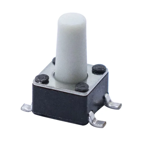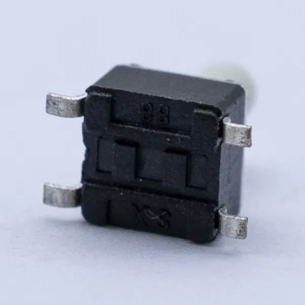 Ultra-compact 4.5×4.5 mm SMT tactile push button designed for industrial control, smart panels, and dense PCBs. Delivers a crisp, consistent click with low profile options, reflow solderability, and wide customization for force, height, actuator style, sealing, and plating. Available in top-actuated and side-actuated variants (3-pin/4-pin).