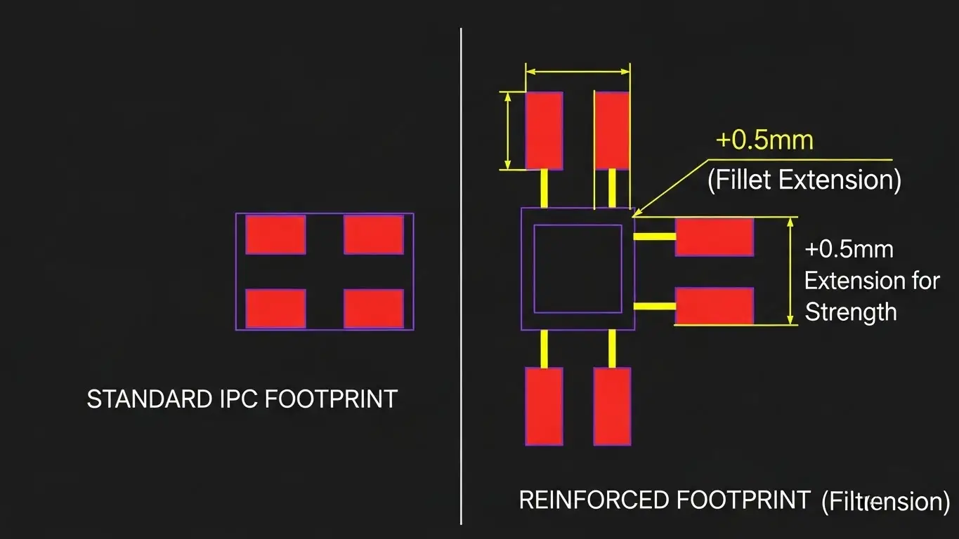 - Apply IPC-7351B Guidelines (With a Twist): While IPC standards are excellent, they are generic. For switches, use the "Most Material Condition" (Density Level A) to ensure maximum solder volume.