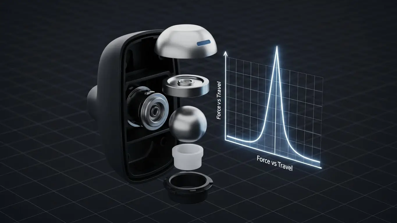 Pro Tip: The "Click Ratio" (Force Drop / Peak Force) defines the sharpness. A 50% ratio feels snappy; a 30% ratio feels soft.